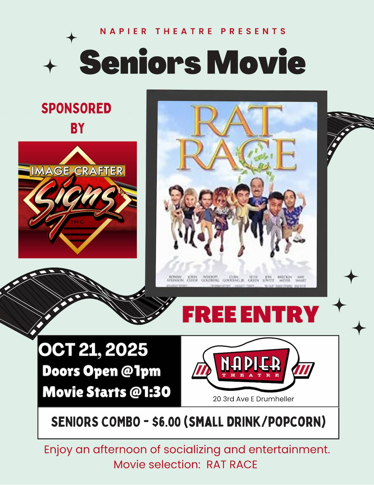 Free Seniors movie on Tuesday, March 19, 2024, at 1:30 pm.